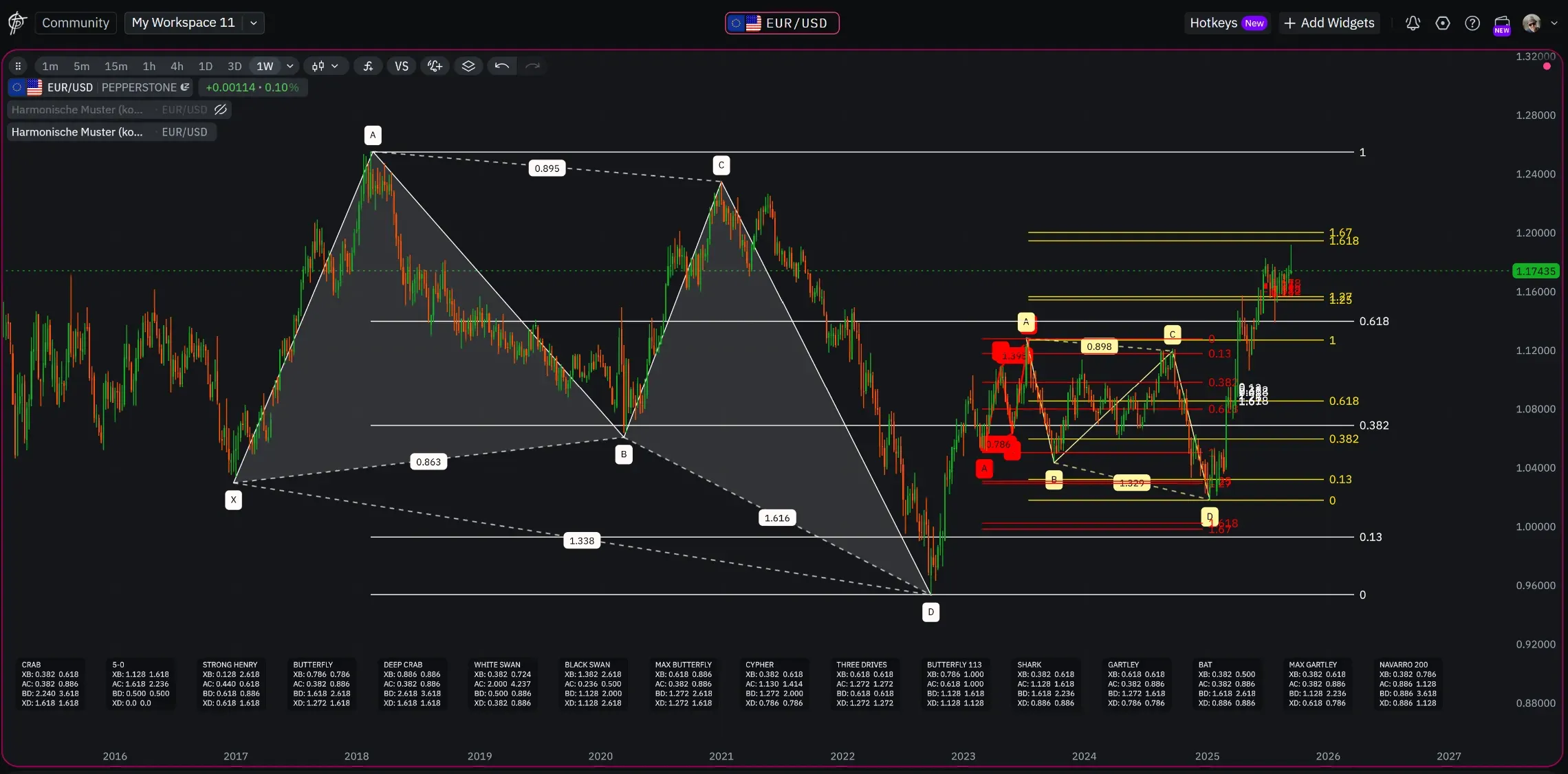 The indicator displays the Fibonacci ratios of the respective x-abcd harmonic patterns directly in the chart and helps you stay focused.
