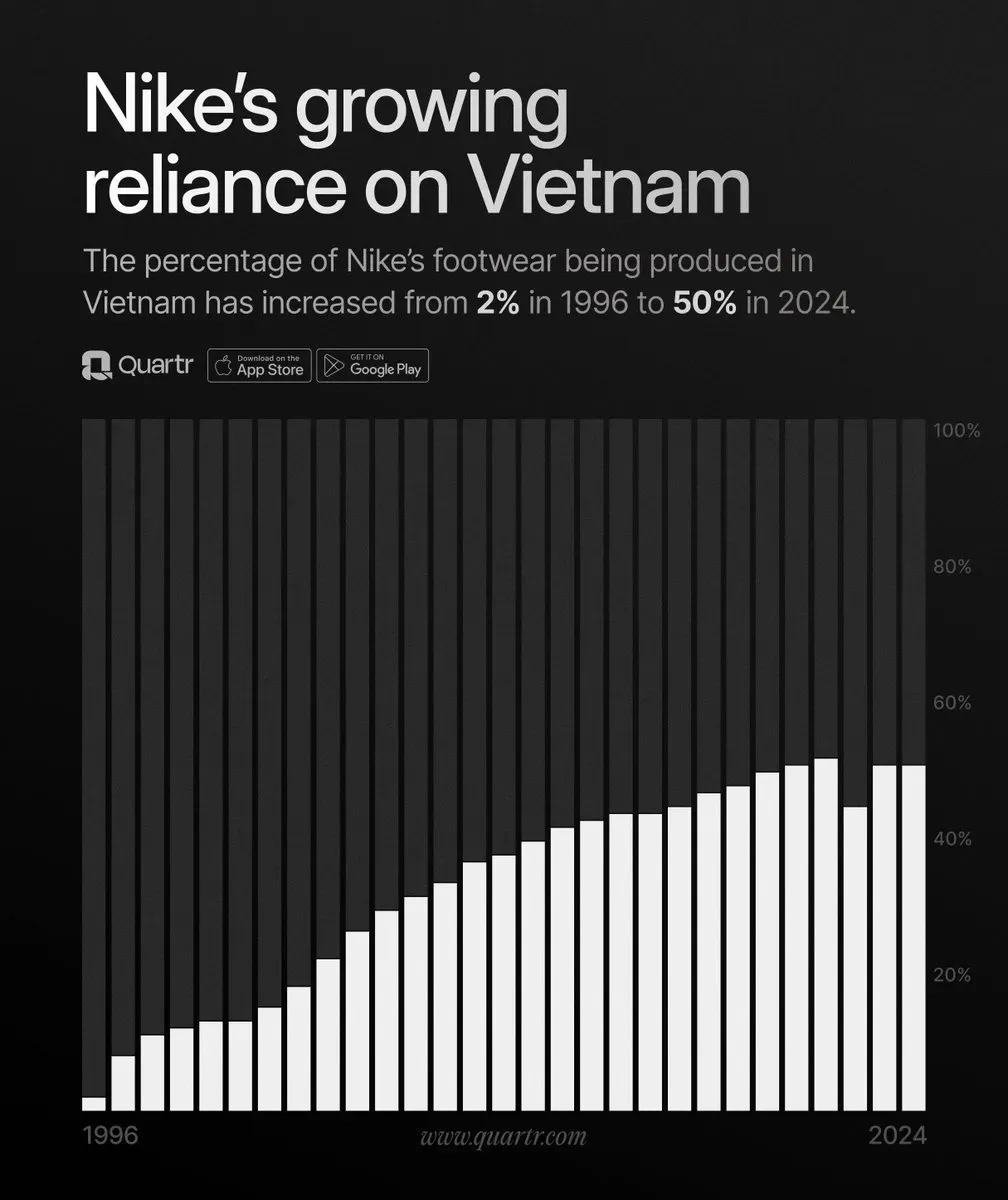 Nike surprised on the top line largely because expectations were depressed - wholesale held up better than feared while NIKE Direct fell 13%, highlighting structural weaknesses in digital execution and consumer engagement. The quarter’s standout negative is margin compression: gross margin down to 42.2%, hit by roughly $1.5B in tariffs on Vietnamese imports plus FX and cost pressures. Even before this print, the setup didn’t look attractive - and the stock price had already been telling that story. Now, rising costs tied to reducing dependence on Vietnam (supplier diversification, retooling, logistics rerouting) make the equity case even less compelling in the near term, adding more pressure on margins and sentiment.