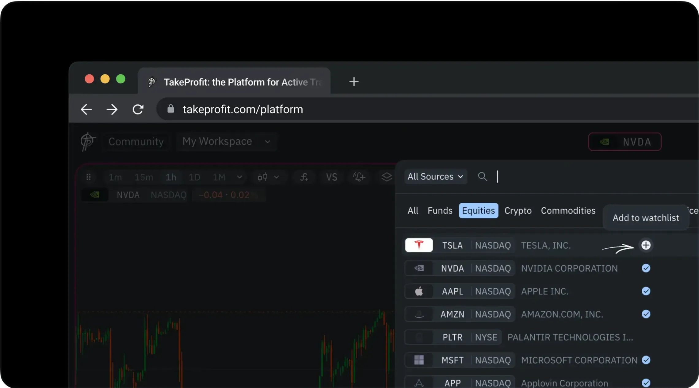 You can now manage your watchlists without leaving the search bar. Just select a list, hold Shift + Enter, and keep exploring - your chosen watchlist stays visible at the bottom of the search window.