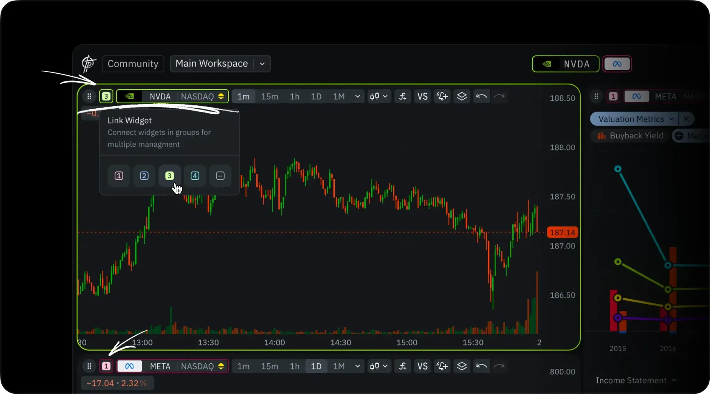 Widget linking just got easier. The redesigned interface lets you connect widgets and share context across charts and watchlists with grouped control and a more consistent look. Learn more →